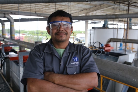 VF’s garment manufacturing facility in Acanceh, Yucatan, Mexico, goes well beyond the standards set for wastewater disposal. Rather than returning the water used in our laundering process as-is, the used water goes through an intense purification process that leaves it cleaner than before, and clean enough to be restored into the aquifer from which it came, or to use in a variety of irrigation projects.