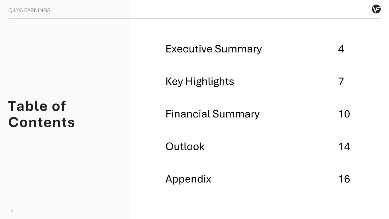Table of Contents Executive Summary 4 Key Highlights 7 Financial Summary 10 Outlook 14 Appendix 16 Q4’25 EARNINGS 3