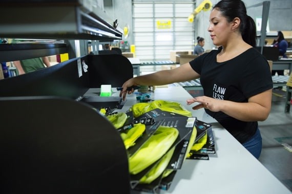 Download High Resolution ImageA VF associate readies product to be shipped out of the VF Outdoor Coalition Distribution Center in Visalia, Calif.